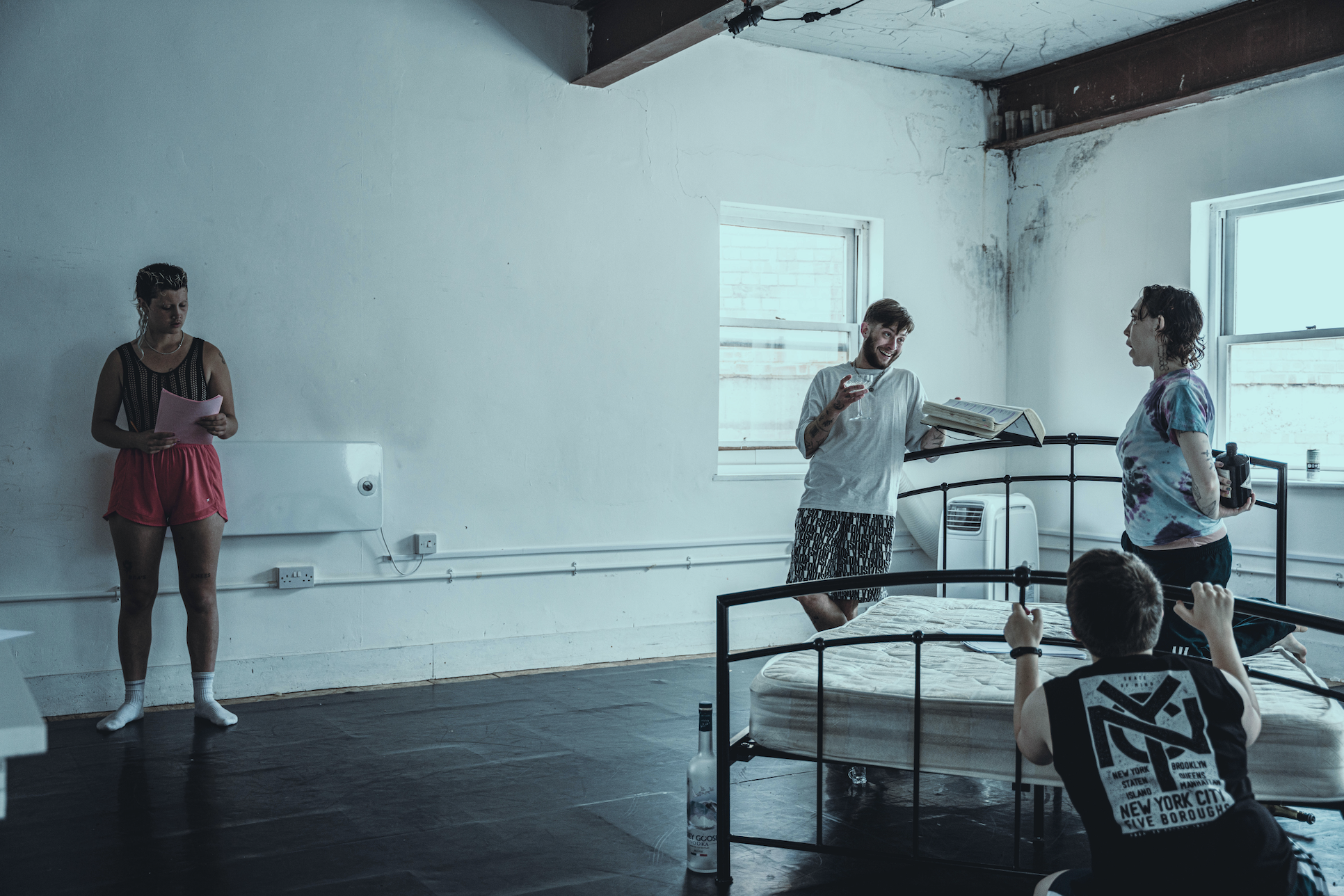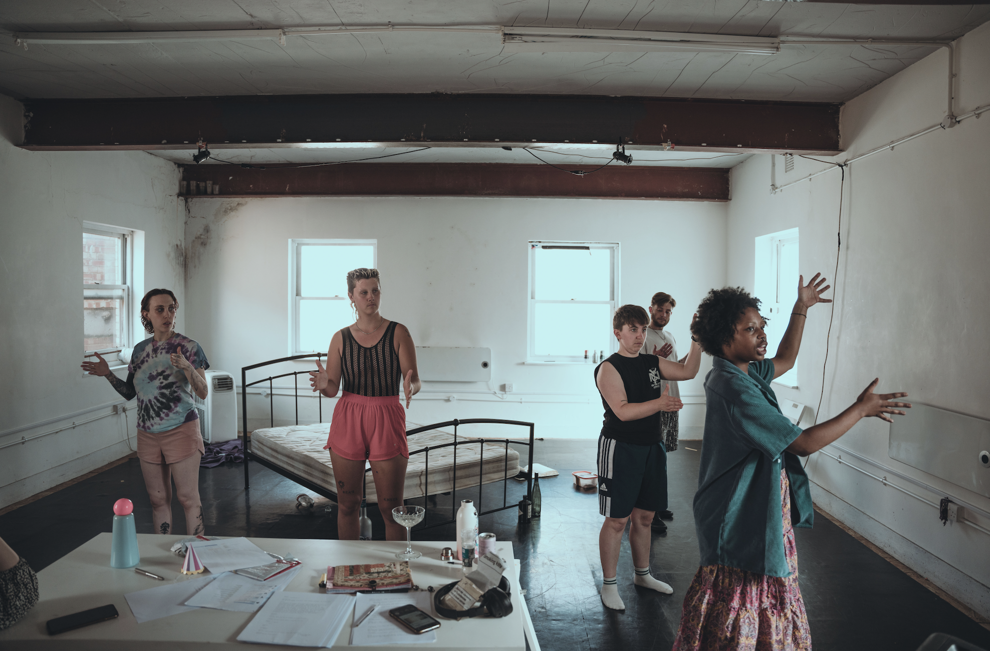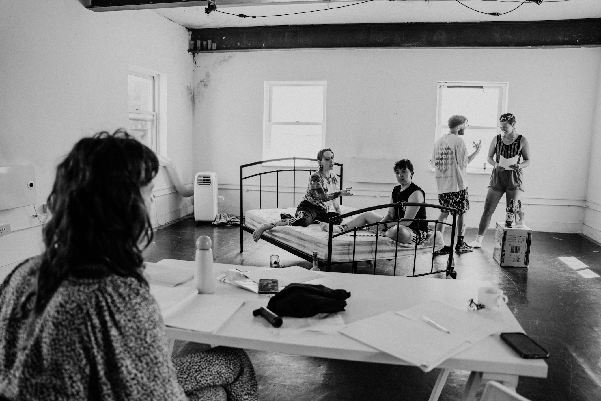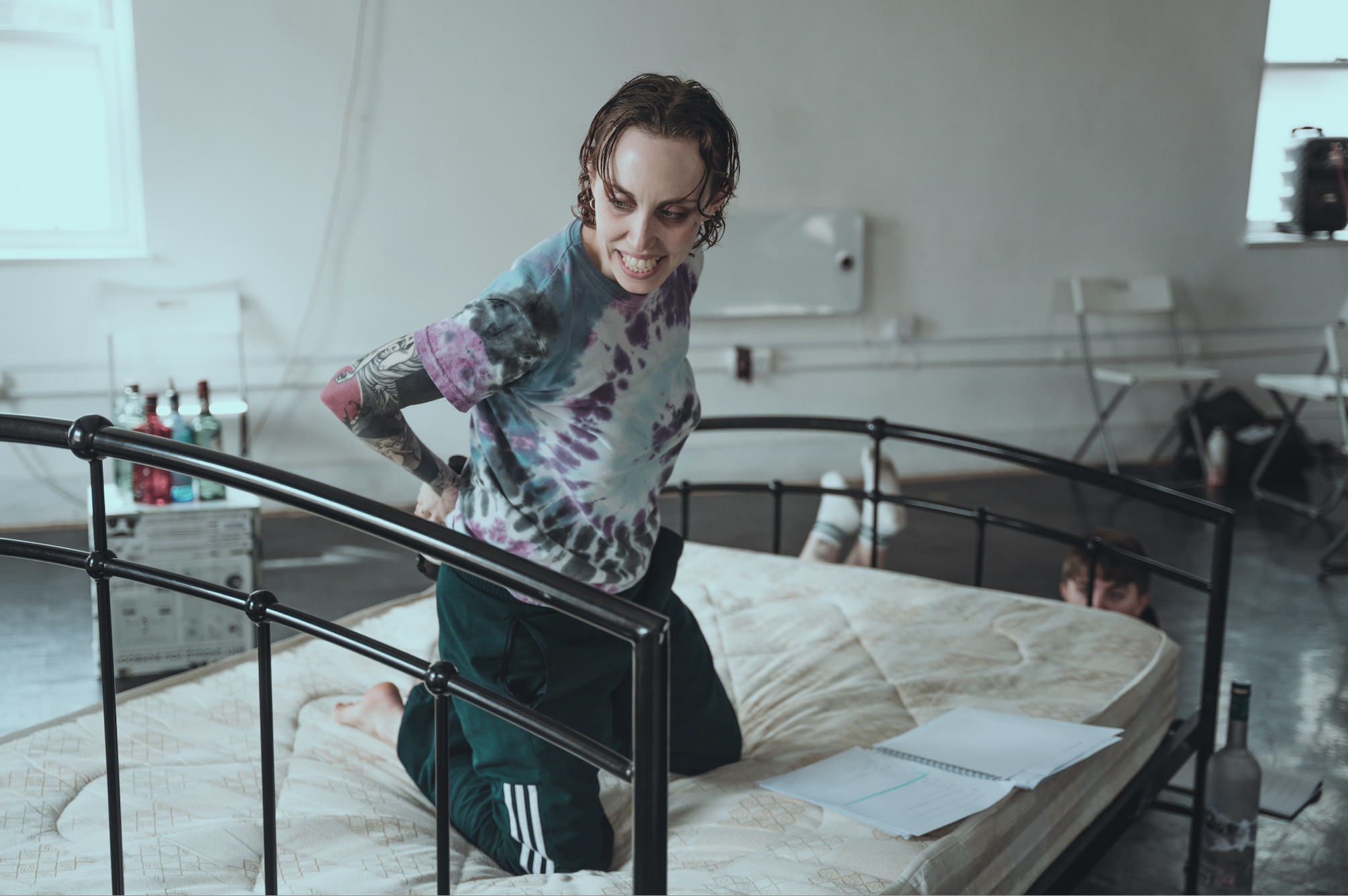 Below: rehearsals shots for Camden Fringe new writing play “pornsick” by Moi Ko Theatre at the Old Red Lion theatre. July 2024.