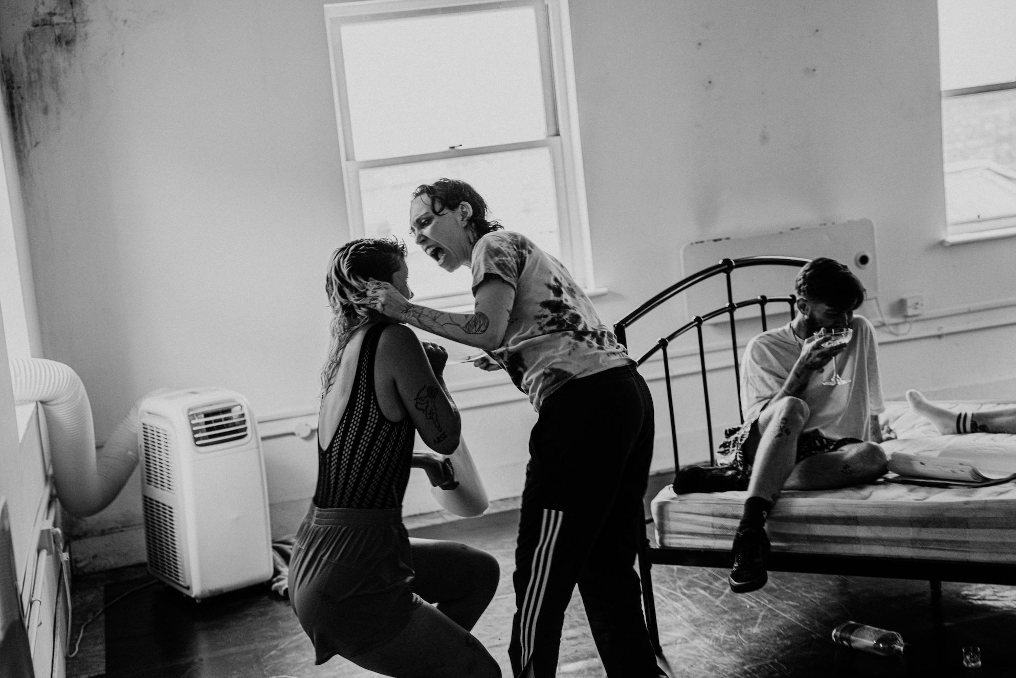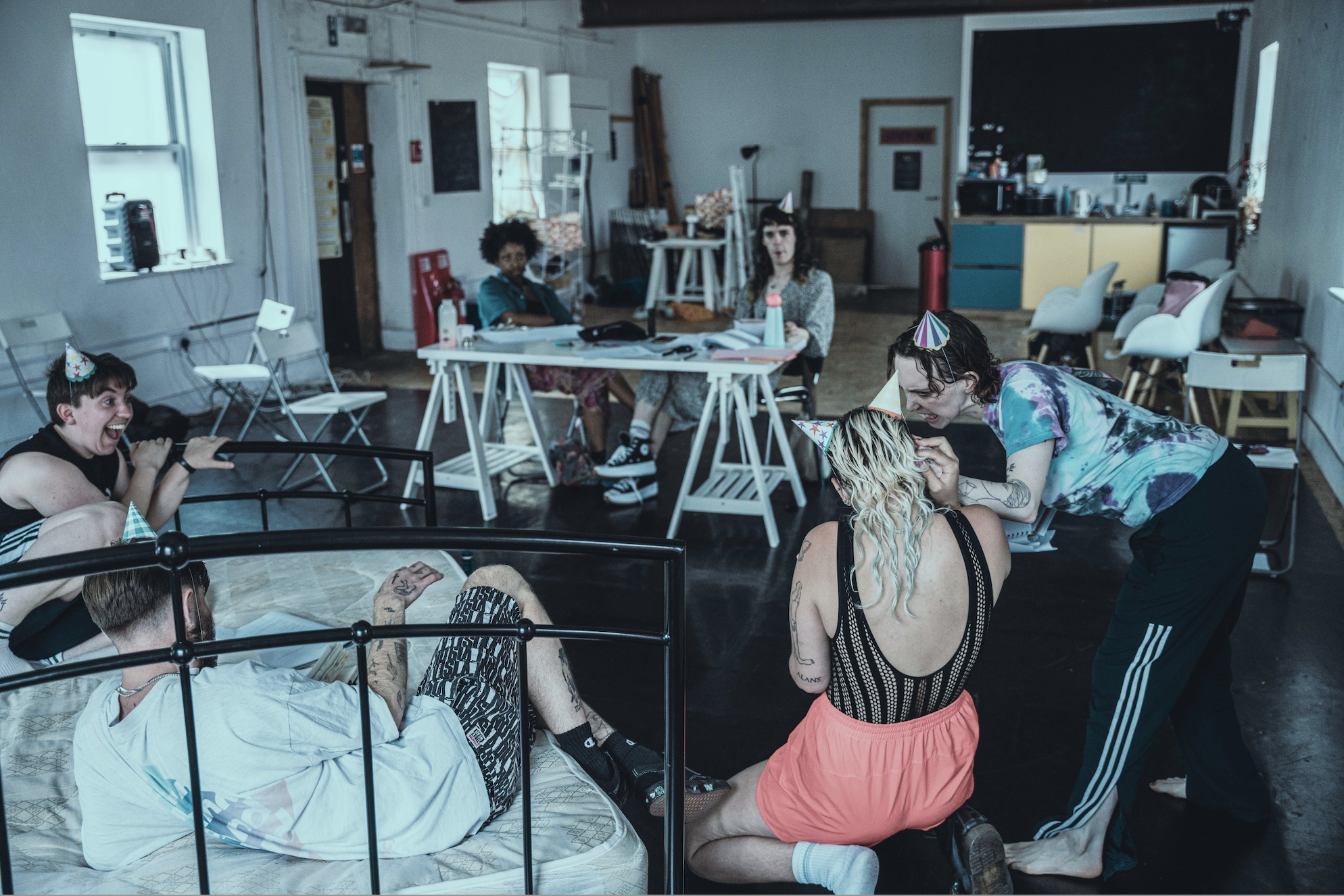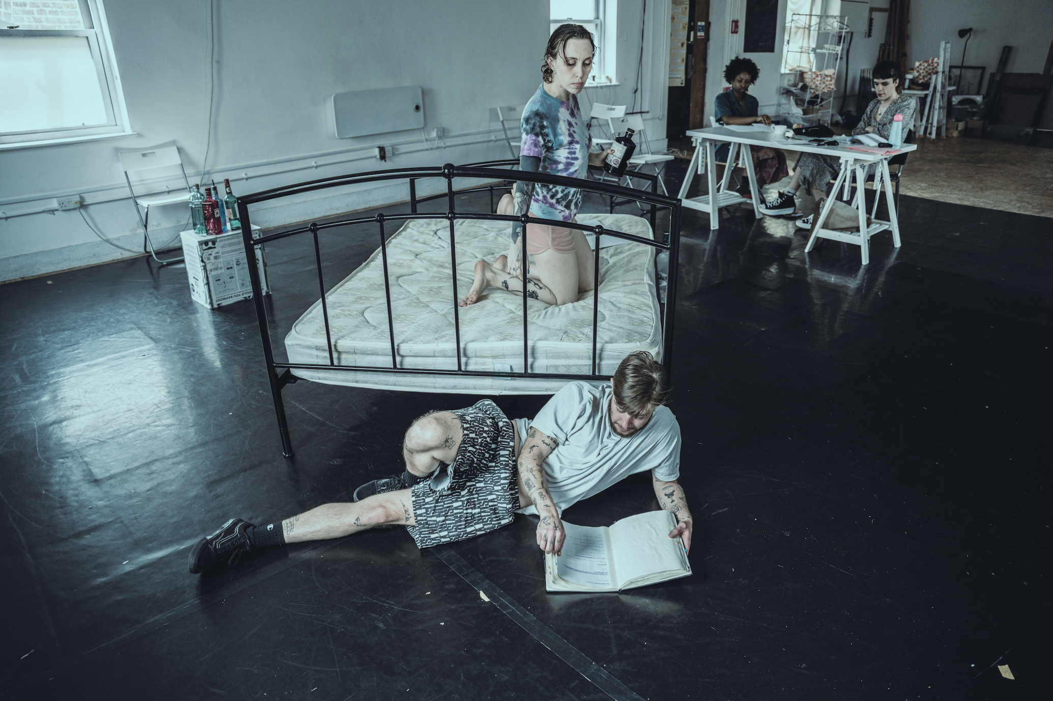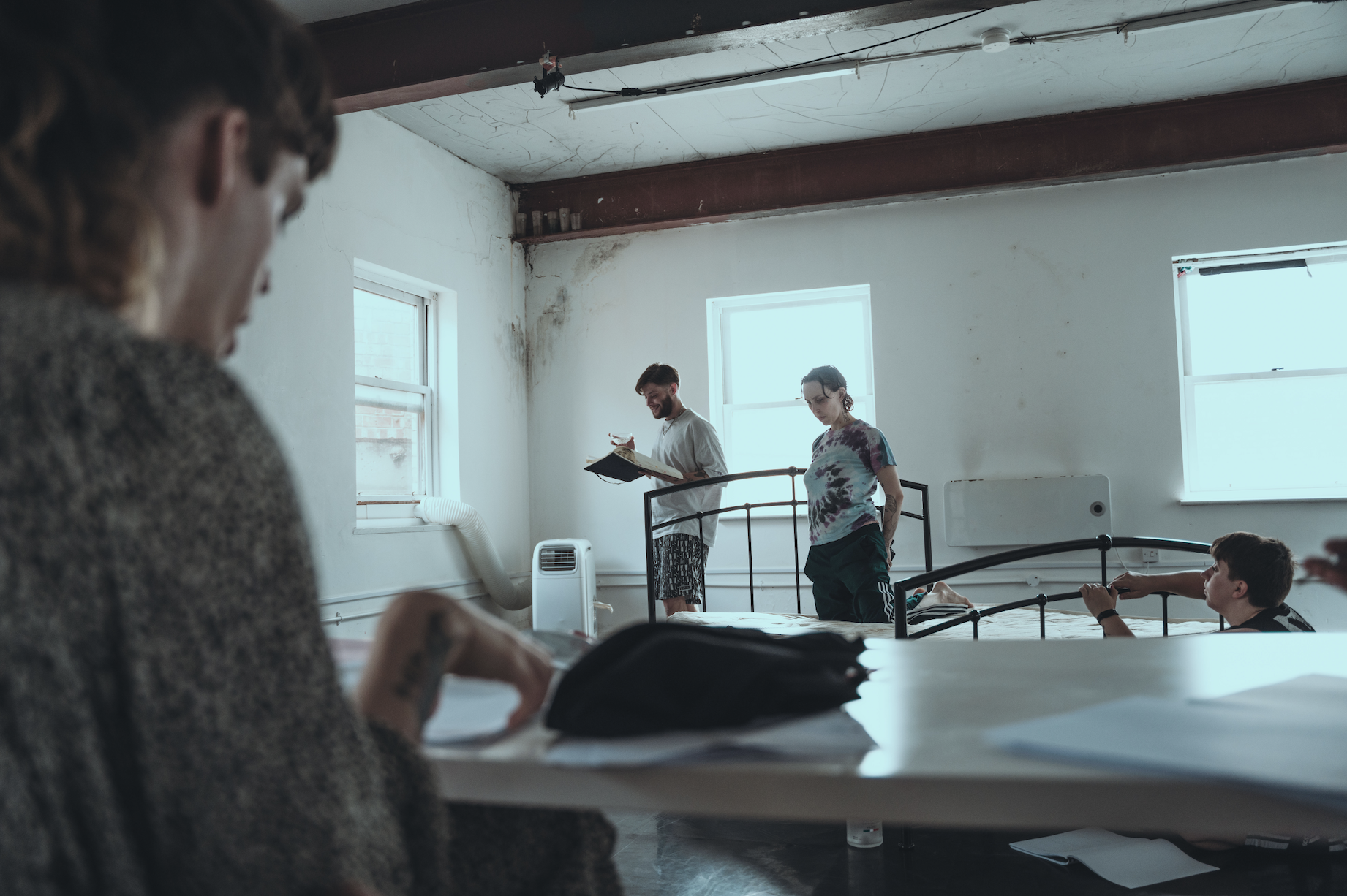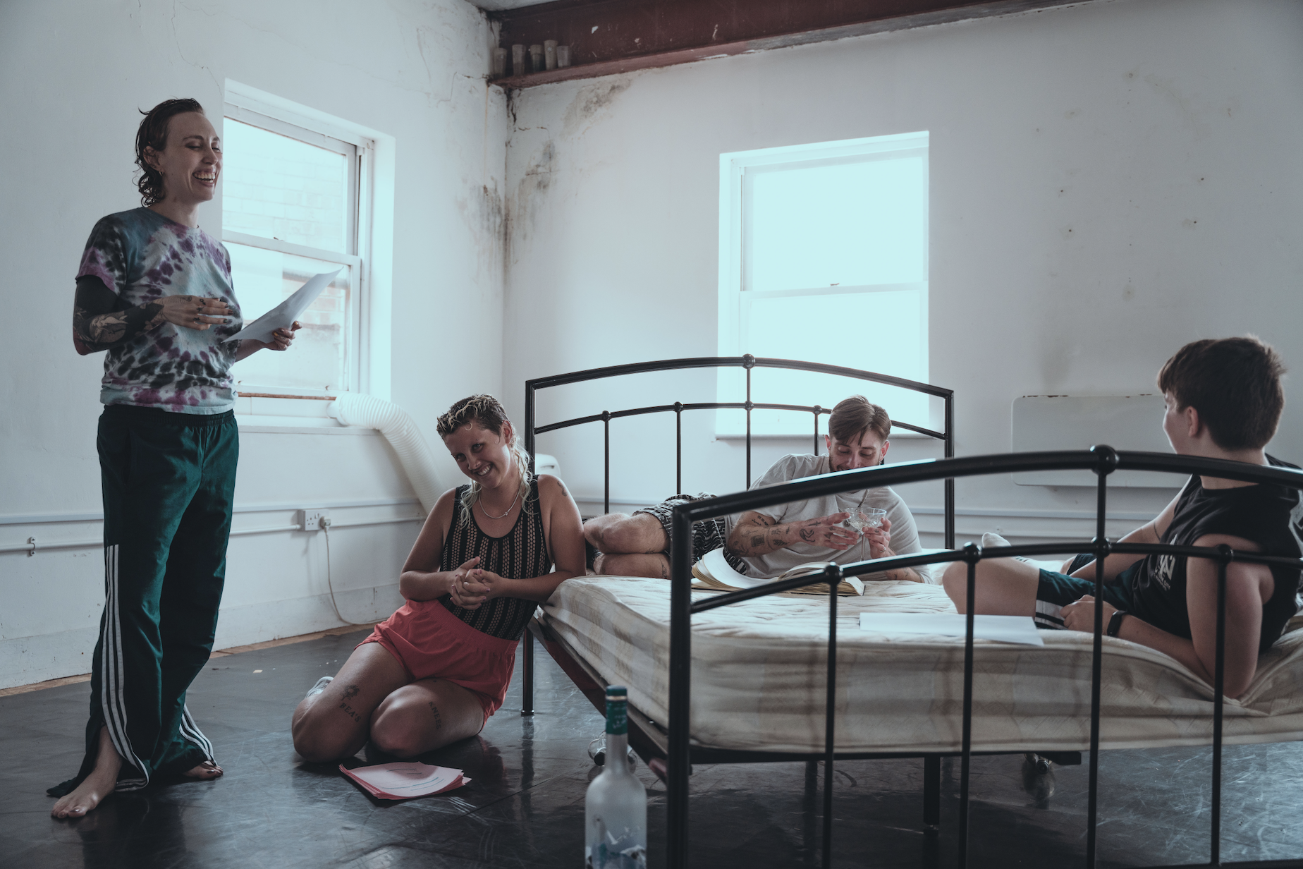Below: rehearsals shots for Camden Fringe new writing play “pornsick” by Moi Ko Theatre at the Old Red Lion theatre. July 2024.