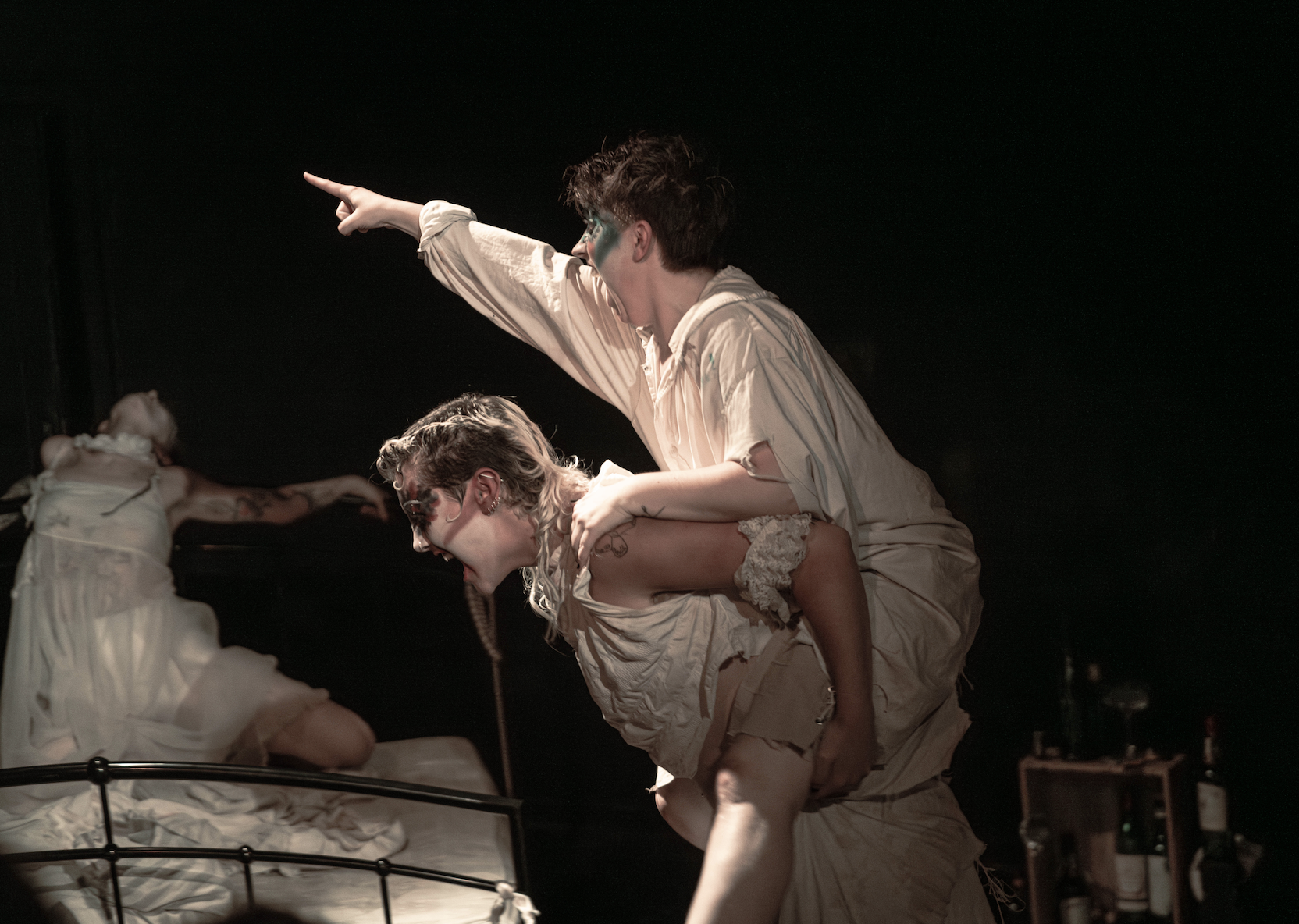 Below: stage photos for Camden Fringe new writing play “pornsick” by Moi Ko Theatre at the Old Red Lion theatre. August 2024.